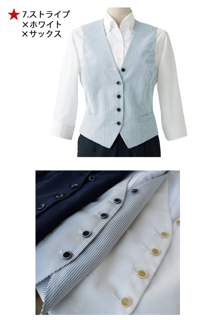 飲食サービス系ユニフォーム セブンユニフォーム レディース ベスト CJ4339 女性用 ストライプ SEVEN UNIFORM 白洋社
