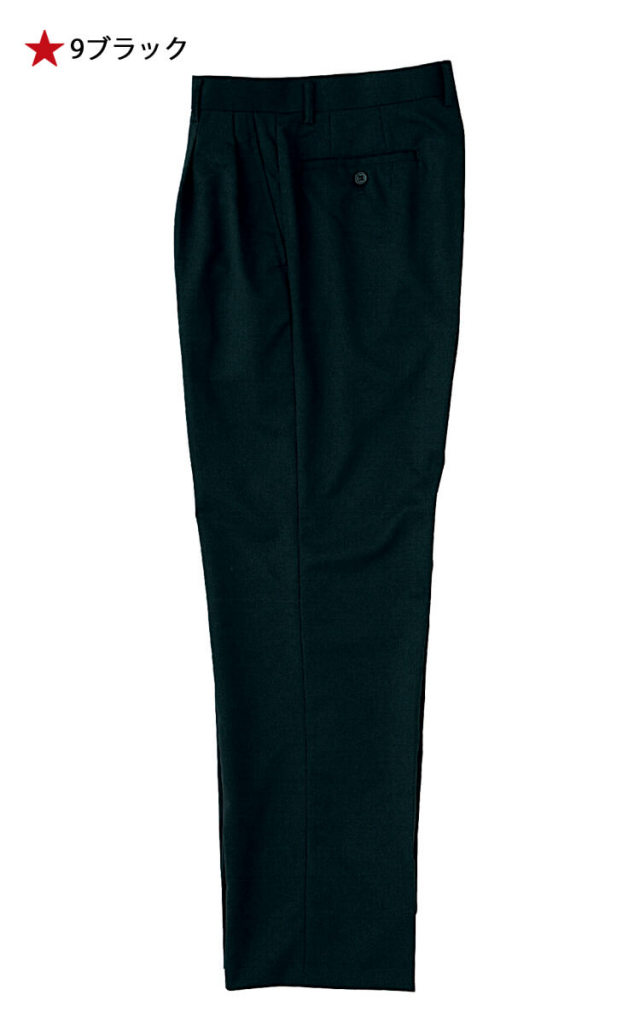 セブンユニフォームのメンズツータックスラックスです。フォーマル黒色パンツです。ツイル素材は、しっかりとした肉厚を感じる綾織の生地です。風合いは硬めですがストレッチ性があり着心地は意外に軽やかです。コーディネートもしやすいパンツです。ホテル、レストラン、売店、和食店、料亭、旅館、居酒屋、和カフェ、お土産店、ベーカリー、スイーツ店などどんな職種にも対応できるスラックスです。