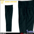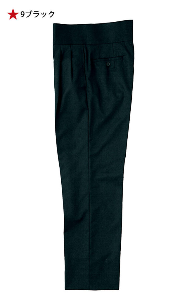 セブンユニフォームのメンズハイウエストツータックスラックスです。ツイル素材は、しっかりとした肉厚を感じる綾織の生地です。風合いは硬めですがストレッチ性があり着心地は意外に軽やかです。フォーマル黒色パンツです。コーディネートもしやすいパンツです。ホテル、レストラン、売店、和食店、料亭、旅館、居酒屋、和カフェ、お土産店、ベーカリー、スイーツ店などどんな職種にも対応できるスラックスです。