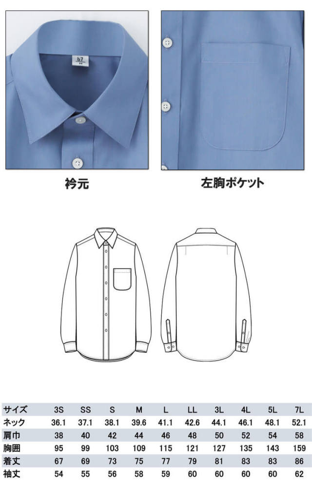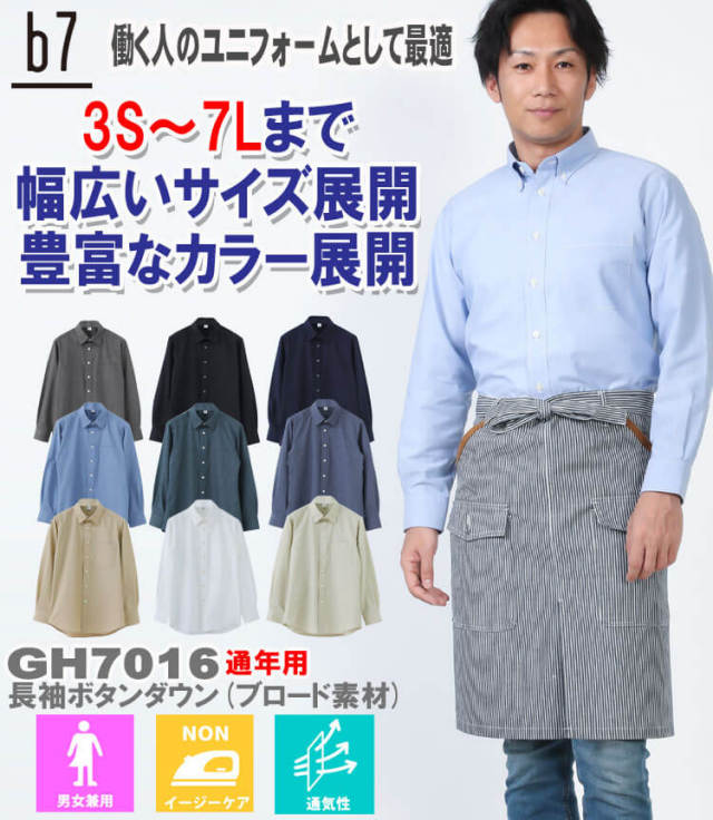 | 製品名: | 飲食サービス系ユニフォーム 男女兼用長袖シャツ GH7016 サイズ3S~7L ブロード セブンユニフォーム ビーラインセブン b7 |