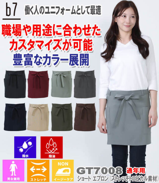 | 製品名: | ショートエプロン GT-7008 腰下 前掛け 男女兼用 セブンユニフォーム ビーラインセブン b7 |