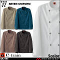 セブンユニフォームの長袖コートです。男女兼用です。超長綿が持つしなやかさ、光沢を持ち合わせながら従来の綿100%商品より堅牢性、洗濯性に優れたオリジナル素材「Steely Cotton」を使用したコートです。ネオバ釦とブルゾン風の袖口がカジュアルでアウトドアな雰囲気を醸し出すコックコートです。ナチュラル感を与える中間色で構成された5色展開です。天然素材で人や社会へ優しいユニフォームを目指した新シリーズ「Steely Cotton(スティーリーコットン)」です。エシカルで厳選したものを取り扱うお店や、レストラン、パティスリー、カフェや嗜好品の物販、人々を優しく癒やすサービスを目指す店舗・施設など、ユニフォームへも自然への配慮を求めるお客様に着て頂きたい仕事着です。
