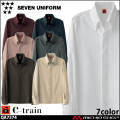 セブンユニフォームのシャツコートです。男女兼用です。超長綿が持つしなやかさ、光沢を持ち合わせながら従来の綿100%商品より堅牢性、洗濯性に優れたオリジナル素材「Steely Cotton」を使用したシャツコートです。個性的な襟高でスキッパー開きのボタンダウンと比翼釦がスタイリッシュな印象を与えます。ナチュラル感を与える中間色で構成された7色展開です。天然素材で人や社会へ優しいユニフォームを目指した新シリーズ「Steely Cotton(スティーリーコットン)」です。エシカルで厳選したものを取り扱うお店や、レストラン、パティスリー、カフェ、人々を優しく癒やすサービスを目指す店舗・施設など、ユニフォームへも自然への配慮を求めるお客様に着て頂きたい仕事着です。