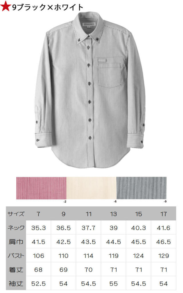 飲食サービス系ユニフォーム セブンユニフォーム 長袖ボタンダウンシャツ CH4459 男女兼用 ストライプ SEVEN UNIFORM 白洋社