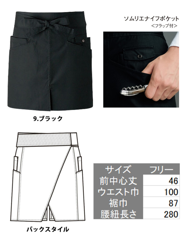 セブンユニフォーム ソムリエエプロン WT7806 男女兼用 SEVEN UNIFORM 白洋社