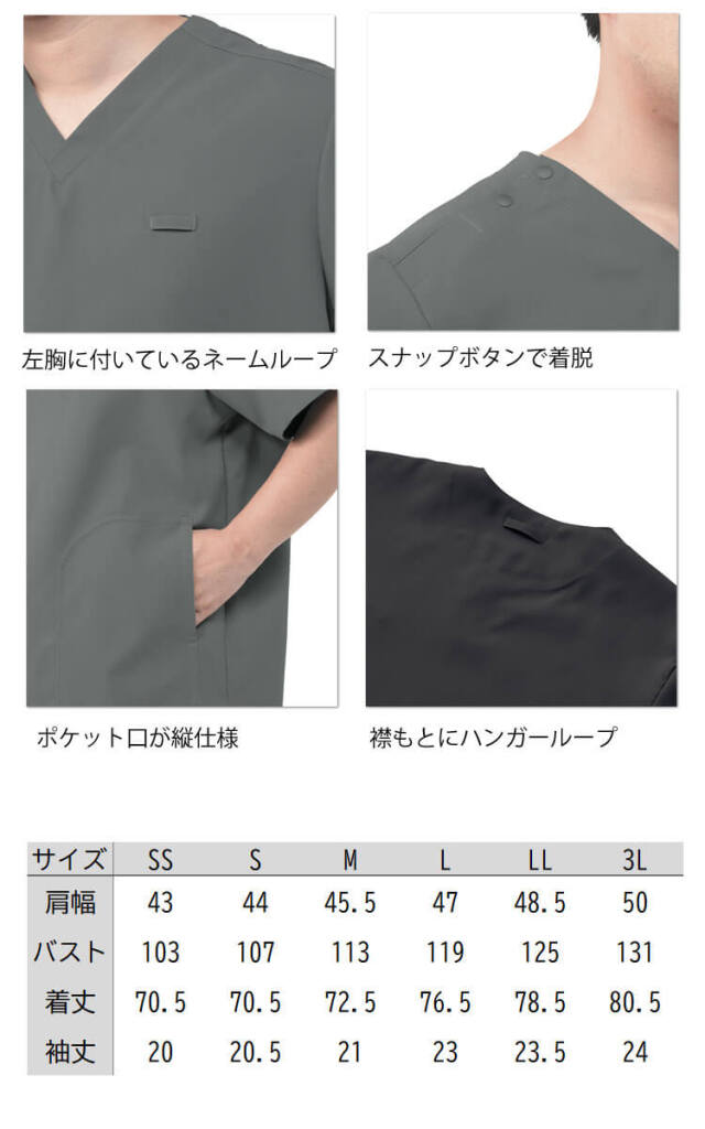 繊維上の特定のウィルスの数を減少させ、細菌の増殖を抑制する、安全性の高いスクラブ。「抗ウィルス性」と「制菌性」を保持し、特定のウィルスの数を99%以上減少させます。シワになりにくく、洗濯後も乾きやすいイージーケアの素材です。制電糸入りで、ホコリを寄せ付けません。繰り返し洗濯しても色が落ちにくいため、きれいな色合い・シルエットを保ちます。