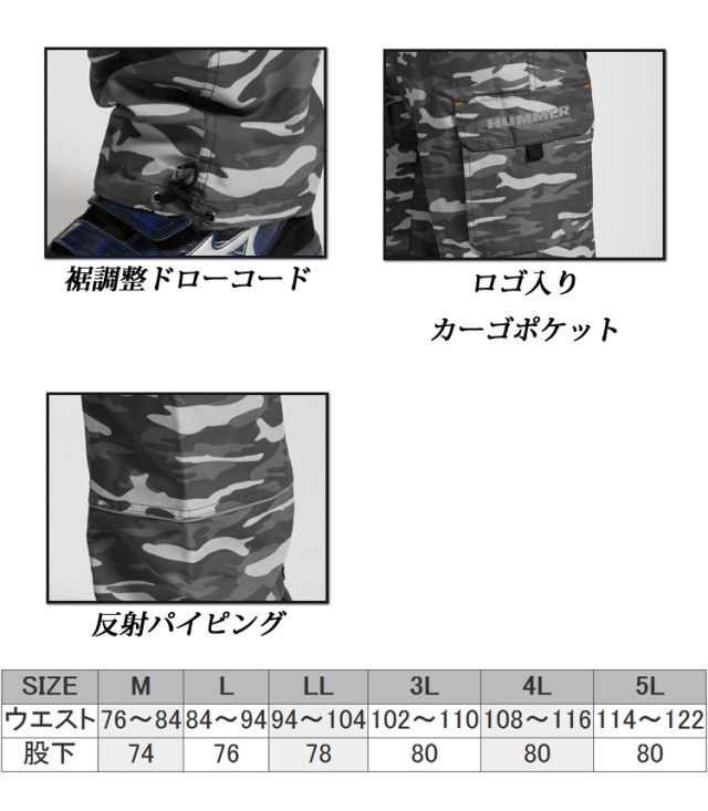 製品名: HUMMER ハマー 裏フリースカーゴパンツ 114125