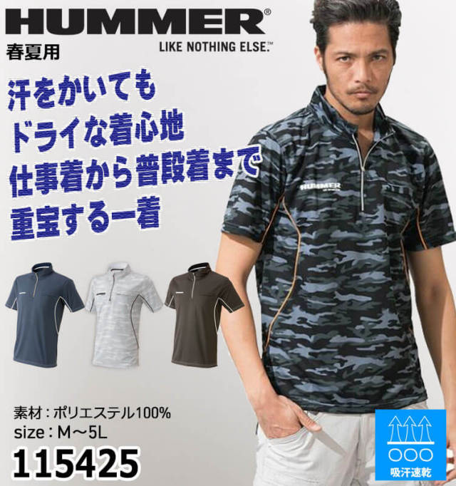 作業服 春夏 HUMMER ハマー 半袖ジップシャツ 115425 アタックベース
