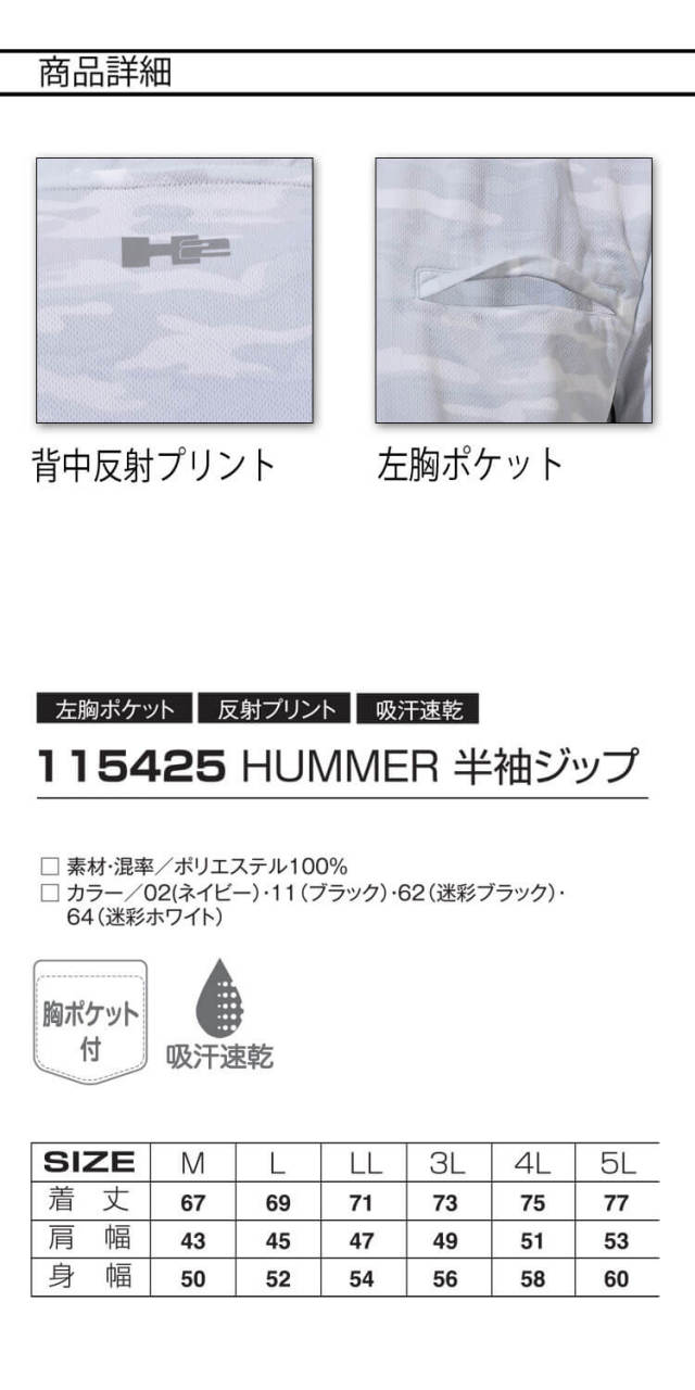 製品名: 作業服 春夏 HUMMER ハマー 半袖ジップシャツ 115425 アタックベース