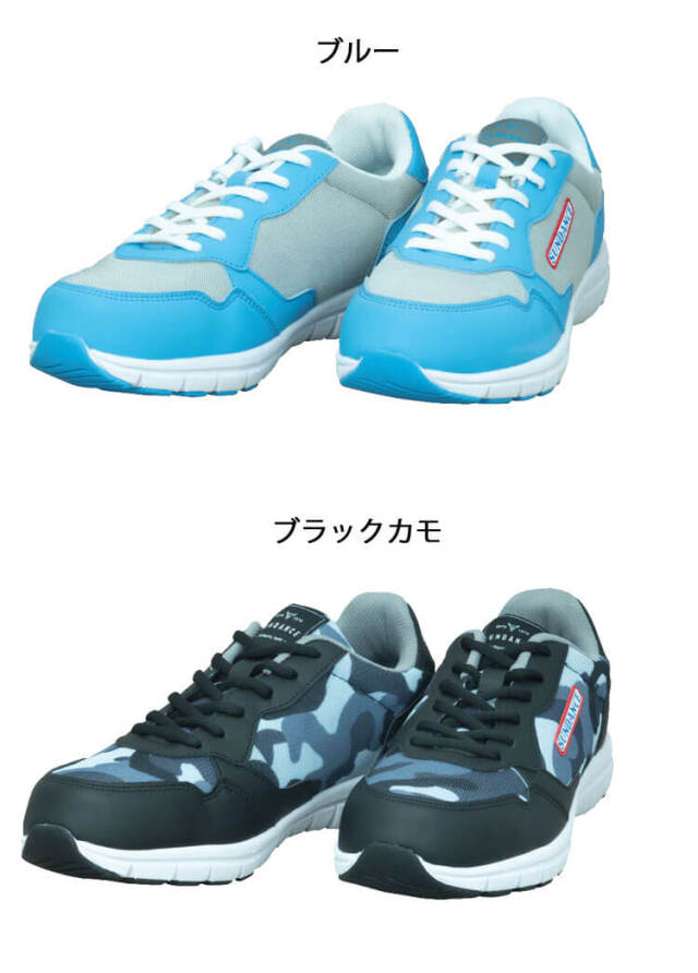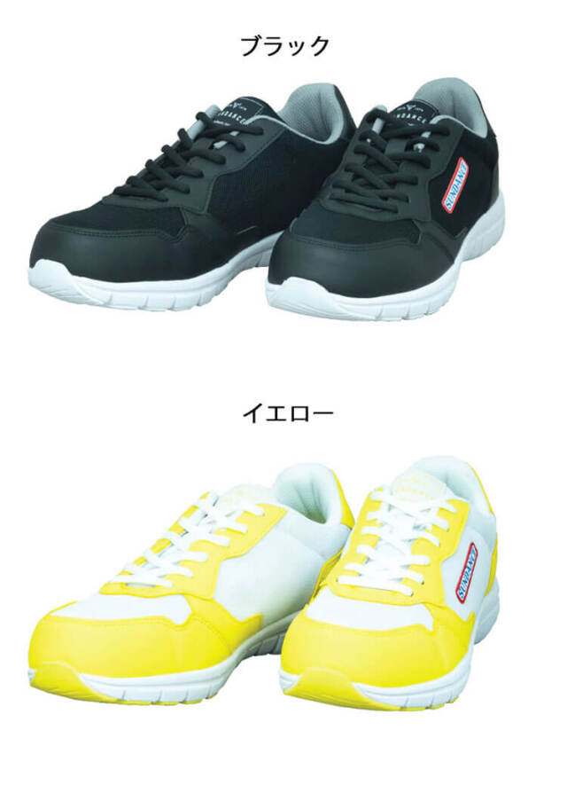 片足250gの超軽量タイプのセーフティースニーカー。高いクッション性と高い屈曲性能で疲れにくく、歩きやすい。ホワイトとブラックはソールが白色なので室内履きにもおすすめ。