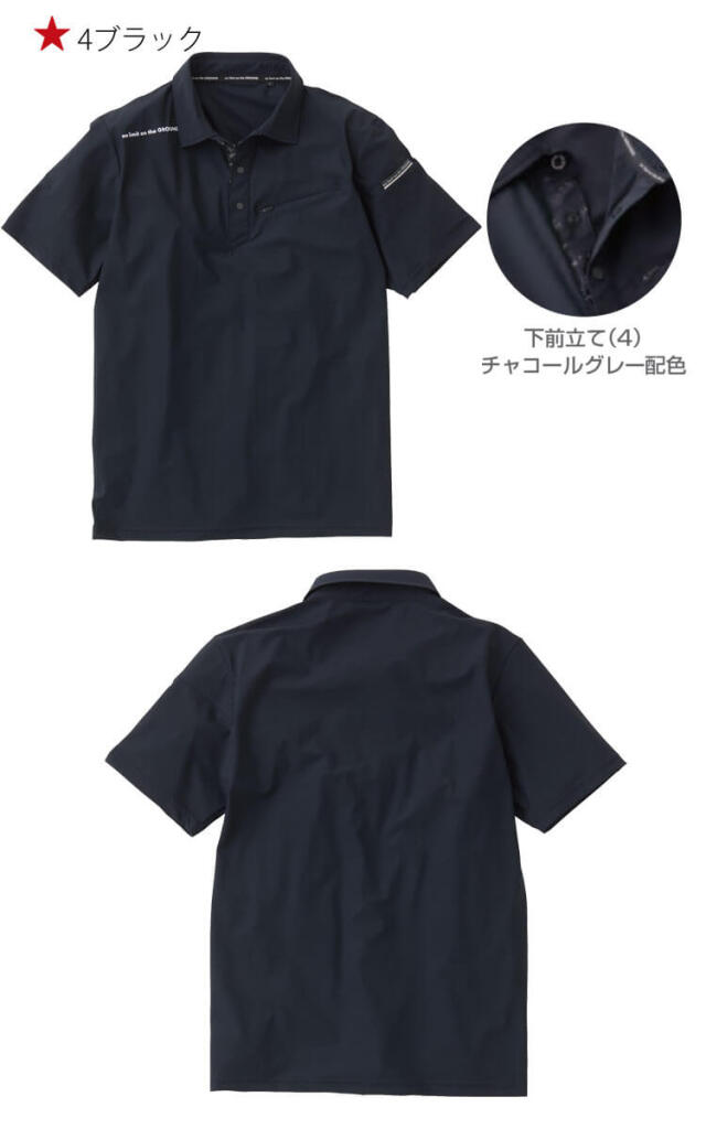 ハイストレッチと接触冷感で夏のワークにぴったりな半袖ポロシャツです。前立てスナップボタンとワイルドカラーでスタイリッシュにキマるクールタッチポロシャツです。ナイロン高混率による接触冷感性で、吸汗速乾による続くドライ感です。