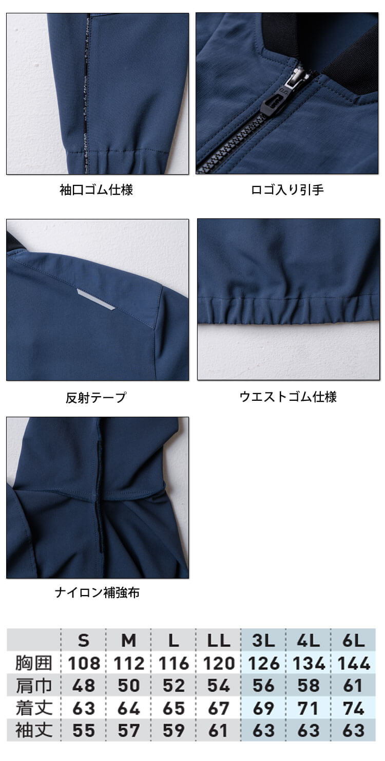 寒さを防ぎ、動きやすさとデザイン性を両立した高密度ストレッチ作業服です。高密度ストレッチ生地は風を通しにくく生地になっています。さらに軽くて丈夫なナイロンミニリップストップを部分使いしており強度アップを実現しています。