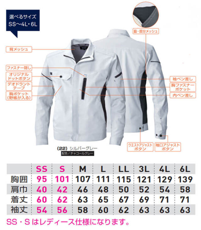 ※SS・Sはレディース仕様になります。