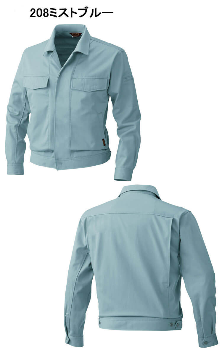 肌触りが良く吸湿性のある綿100%ツイル素材。火を扱う現場にも対応した仕様。防縮・防シワ性に優れた綿100%素材を使用した定番作業服。