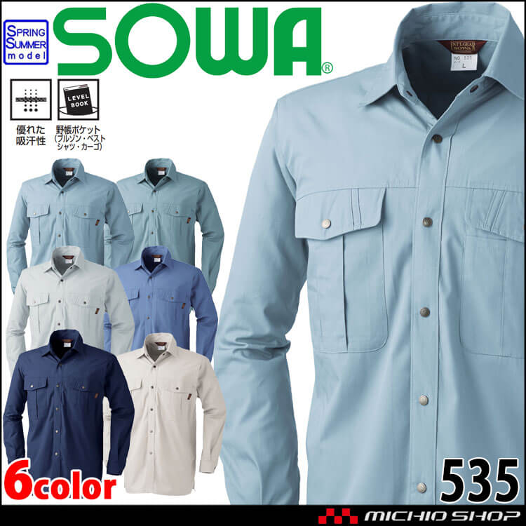 SOWA 桑和 長袖シャツ 535 作業服 作業着 春夏 吸汗性