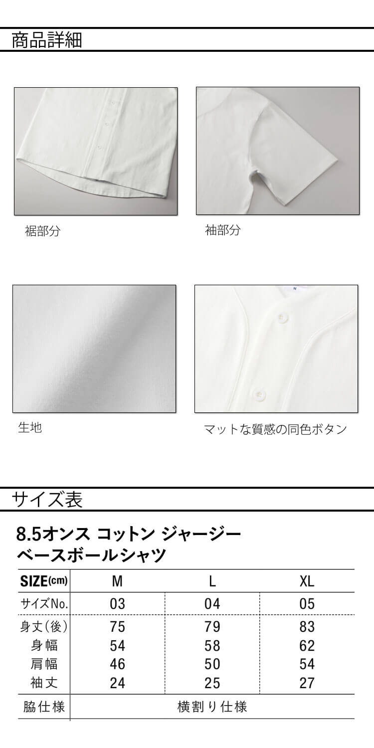 | 製品名: | 8.5オンス コットン ジャージー ベースボールシャツ |