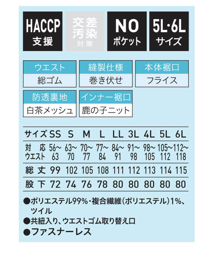 | 製品名: | 食品工場白衣 ホッピングパンツ AQ-795 男女兼用 サーヴォ SERVO フードファクトリー 常温作業向け 制服 ユニフォーム |