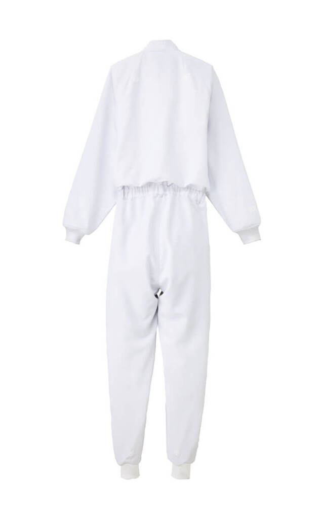 SERVOサーヴォの衛生白衣の長袖つなぎです。高温作業場向けのユニフォームです。クールフリーデ(Coolfriede)素材は、汗をかいても持続する、ドライで爽やかな着心地です。素早く汗を吸い上げ、拡散・乾燥するから、涼しさが継続し、着る人のストレスも軽減できます。
