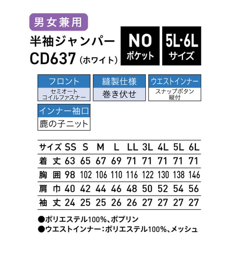 SERVOサーヴォの衛生白衣の半袖ジャンパーです。高温作業場向けのユニフォームです。クールフリーデ(Coolfriede)素材は、汗をかいても持続する、ドライで爽やかな着心地です。素早く汗を吸い上げ、拡散・乾燥するから、涼しさが継続し、着る人のストレスも軽減できます。