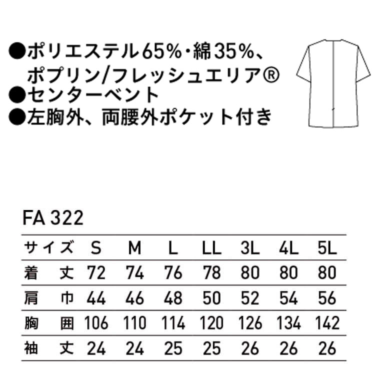 食品工場白衣 衿無し調理衣 半袖 FA322 男性用 メンズ サーヴォ SERVO フードファクトリー 給食サービス 制服 ユニフォーム