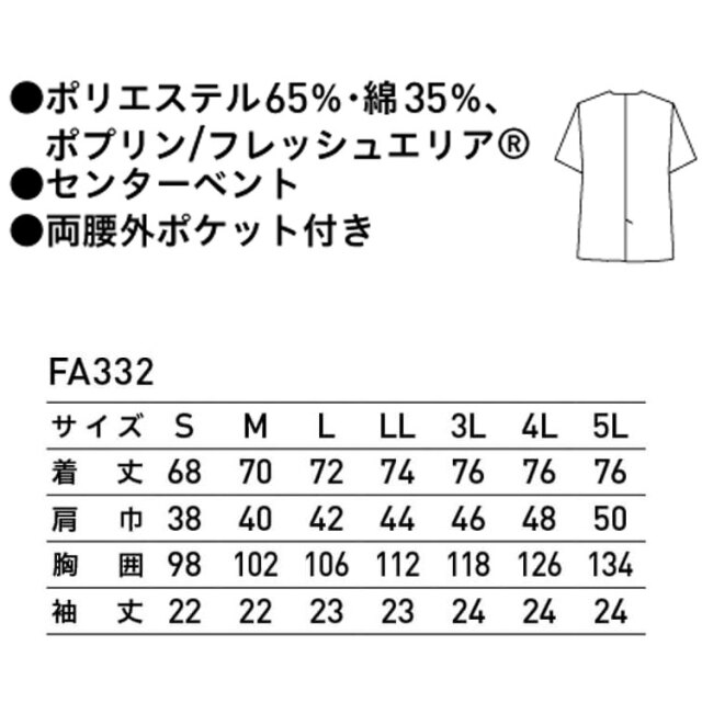 食品工場白衣 半袖コート FA302 FA303 サーヴォ SERVO フードファクトリー 給食サービス 制服 ユニフォーム 男女兼用