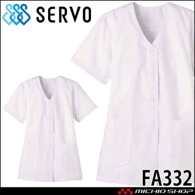 食品工場白衣 衿無し調理衣 半袖 FA332 女性用 レディース サーヴォ SERVO フードファクトリー 給食サービス 制服 ユニフォーム