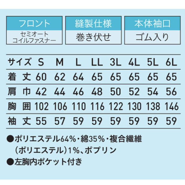 | 製品名: | 食品工場白衣 長袖ジャンパー FA671 男女兼用 サーヴォ SERVO フードファクトリー 常温作業向け 制服 ユニフォーム |