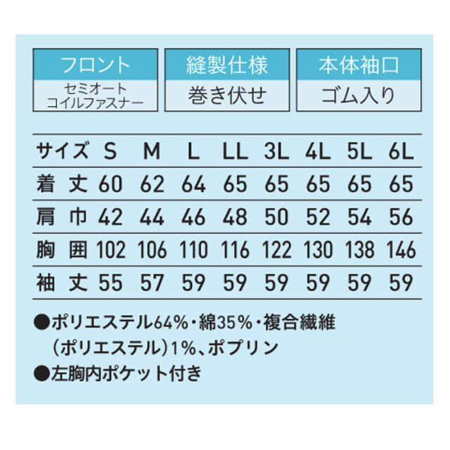 | 製品名: | 食品工場白衣 長袖ジャンパー FA673 男女兼用 サーヴォ SERVO フードファクトリー 常温作業向け 制服 ユニフォーム |
