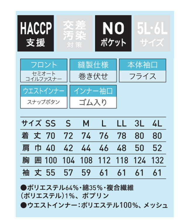 | 製品名: | 食品工場白衣 長袖コート FAP2718 男女兼用 サーヴォ SERVO フードファクトリー 常温作業向け 制服 ユニフォーム |