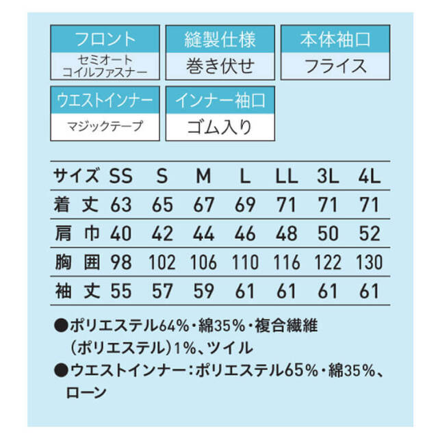 | 製品名: | 食品工場白衣 長袖ジャンパー FH2711 男女兼用 サーヴォ SERVO フードファクトリー 常温作業向け 制服 ユニフォーム |