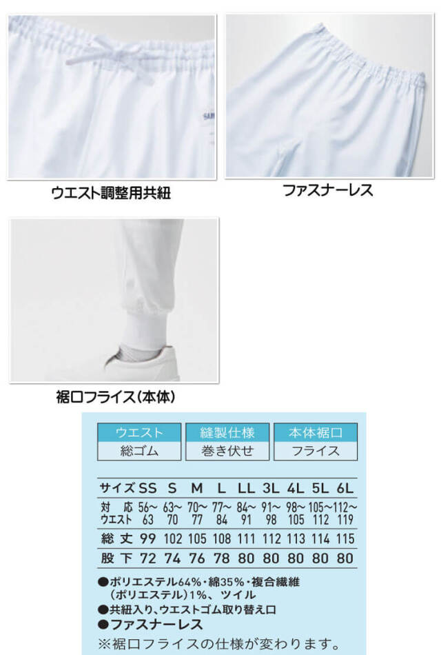 | 製品名: | 食品工場白衣 ホッピングパンツ FH-608 男女兼用 サーヴォ SERVO フードファクトリー 常温作業向け 制服 ユニフォーム |
