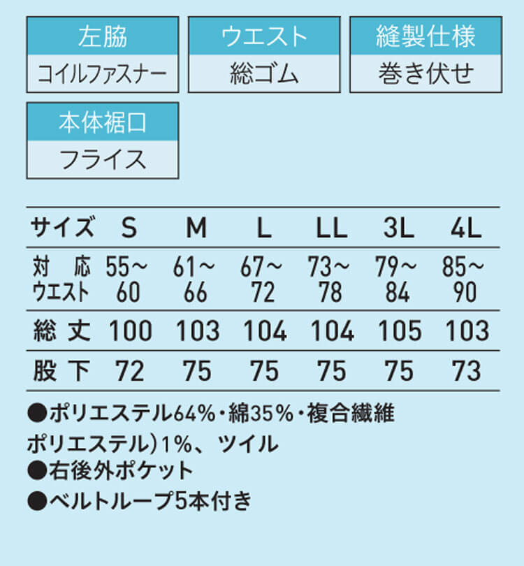 ・素材 : ポリエステル64% 綿35% 複合繊維(ポリエステル)1% ツイル