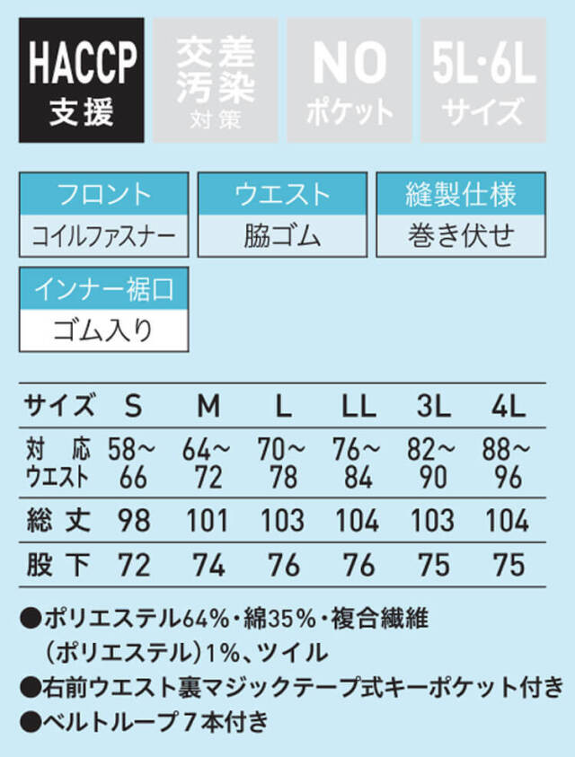 | 製品名: | 食品工場白衣 パンツ FHP865 男性用 メンズ サーヴォ SERVO フードファクトリー 常温作業向け 制服 ユニフォーム |