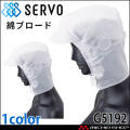 SERVOサーヴォの衛生白衣帽子です。ケープなしのショートフードタイプです。異物混入対策を意識したフードタイプ同等のディテールを備えつつ、コストをやや抑えられます。給食サービスや軽作業中心の工場に適しています。綿ブロード素材は、肌に優しく、吸汗性に優れた素材です。