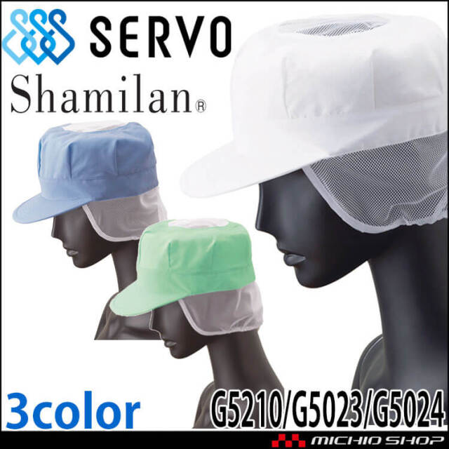 SERVOサーヴォの衛生白衣帽子です。着脱が容易なキャップタイプです。着脱が簡単で、検品・運搬・配送等の幅広い作業環境におすすめです。後頭まわりの調節機能や毛髪落下を防ぐメッシュケープなど、基本機能を備えています。衝突防止の安全性を考慮し、ツバを厚く長めに設定しています。シャミラン素材は、ムレない、ベトつかない、麻のような肌触りが特長です。体からの熱や不快な湿気を効率的に放出する通気性と速乾性を備え、麻のようなシャリ感のある肌触りが快適さを向上。着用時の暑さを和らげます。
