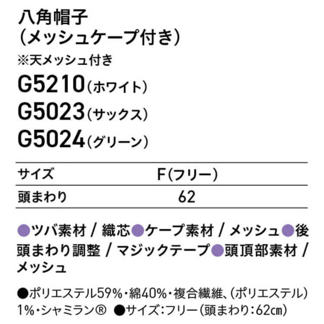 | 製品名: | 八角帽子 メッシュケープ付き |