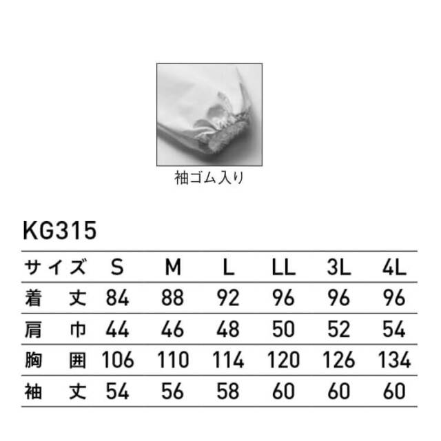 食品工場白衣 衿付き 綿100% カツラギ調理衣 長袖 KG315 男性用 メンズ サーヴォ SERVO フードファクトリー 給食サービス 制服 ユニフォーム