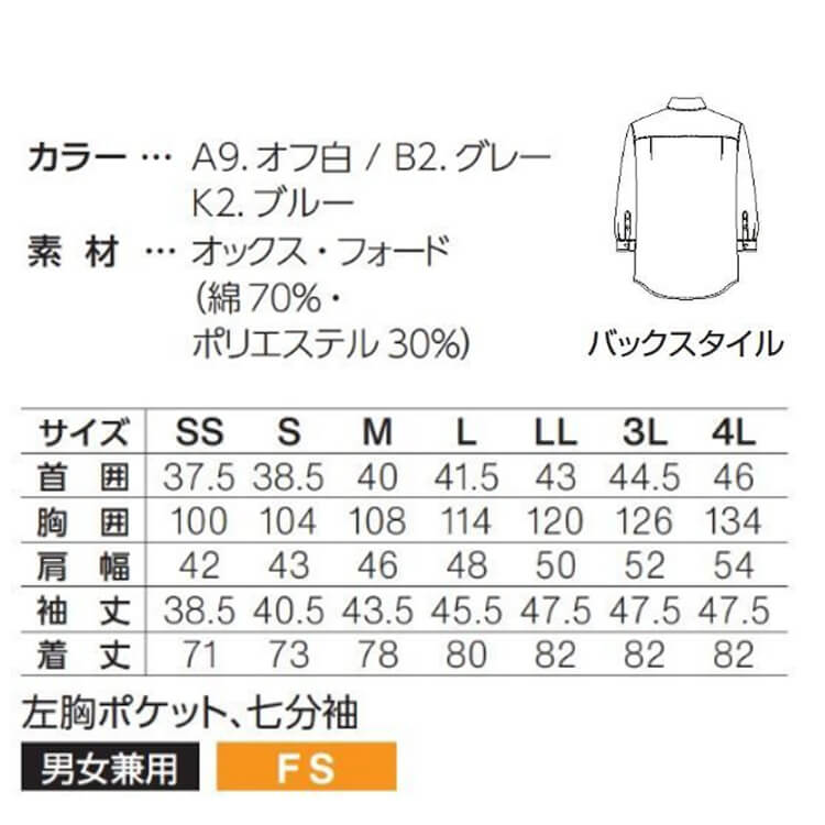 飲食サービス系ユニフォーム SERVO サーヴォ シャツ ET5731/ET5732/ET5733/ET5734 男女兼用 七分袖 飲料店 レストラン カフェ キッチン 制服 ユニフォーム