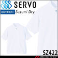 SERVOサーヴォの衛生白衣の半袖ジャンパーです。高温作業場向けのユニフォームです。涼みドライ(Suzumi Dry)素材は、生地の裏は、肌への接触面積を減らす点タッチ設計だから、汗をかいてもベトつきにくく快適です。凹凸のある組織で、多面的に汗や水分をキャッチ。素早く拡散・乾燥させ、快適な着心地が続きます。水性汚れの落ちやすさも向上しています。鹿の子ニットで締め付け感を和らげつつ、体毛落下を抑制します。加工販売業者から食品配送など、幅広い職種に最適です。暑熱対策や水場仕事にもおすすめです。