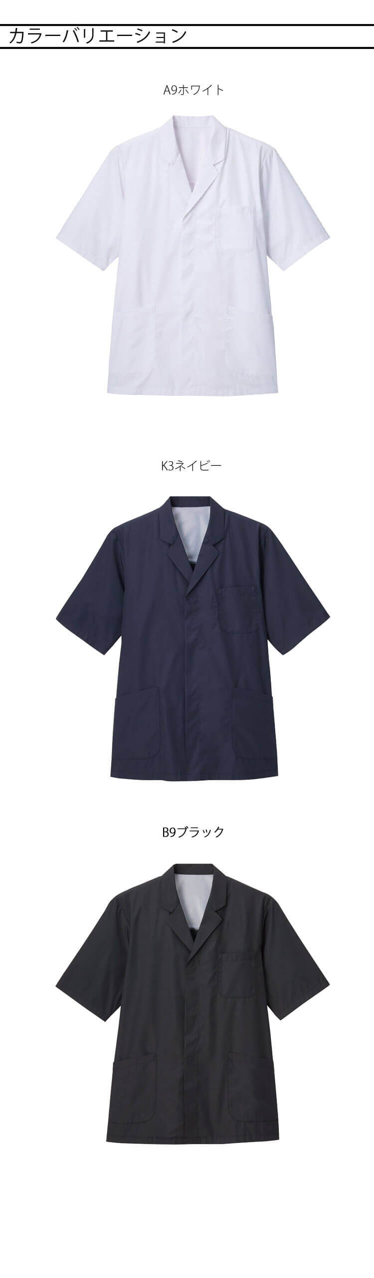 A9ホワイト・K3ネイビー・B9ブラック