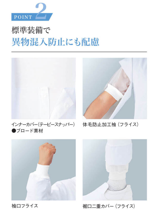 KAZENカゼン食品衛生白衣のレディスパンツです。暑熱環境向けのユニフォームです。薄地ながらもしっかりとした素材は、高温多湿での作業に適しています。標準装備で異物混入防止にも配慮しています。