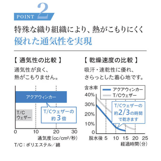 〇特殊な織り組織により、熱がこもりにくく優れた通気性を実現