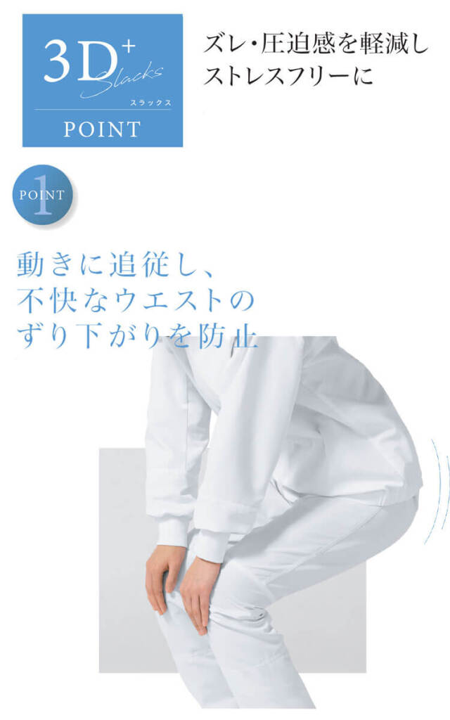 〇動きに追従し、不快なウエストのずり下がりを防止