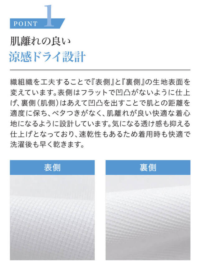 〇肌離れの良い涼感ドライ設計