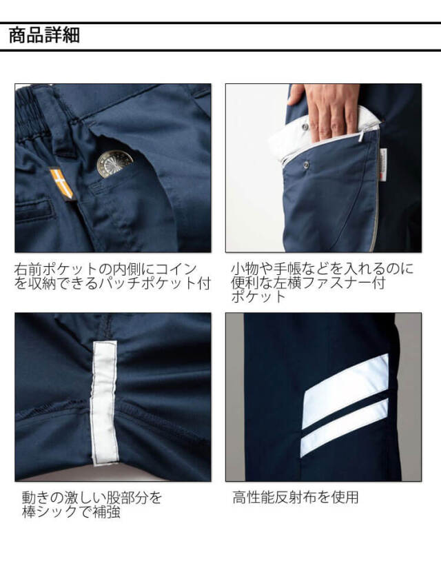 タカヤ商事の帯電防止の春夏仕様のワンタックカーゴパンツです。反射材をレイアウトしたスタンダードモデルの作業服です。要所に配置した反射材で周囲からの視認性を確保し、夜間作業や倉庫内作業等での対車両事故リスクを軽減します。環境への負荷がすくないエコ商品の作業服です。高品質の日本製です。