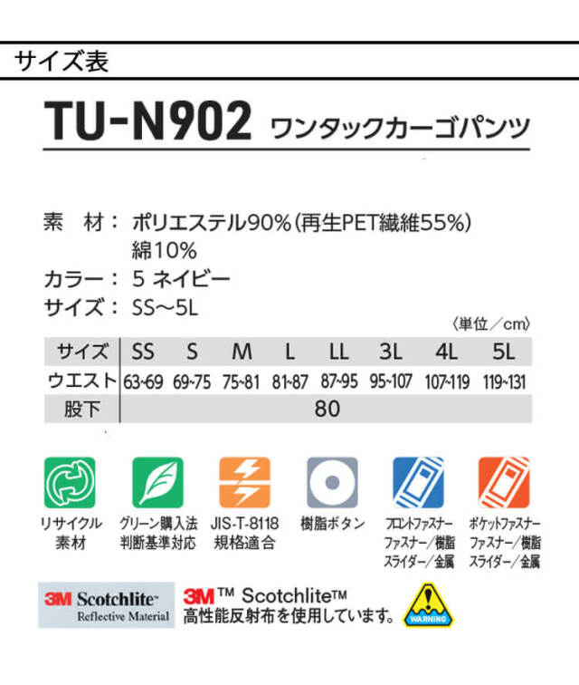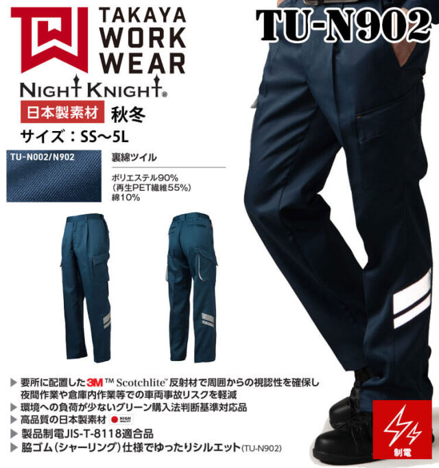 | 製品名: | タカヤ商事 タカヤワークウェア ワンタックカーゴパンツ TU-N902 秋冬 パンツ 製品制電 エコ 作業着 Night Knight ナイトナイト |