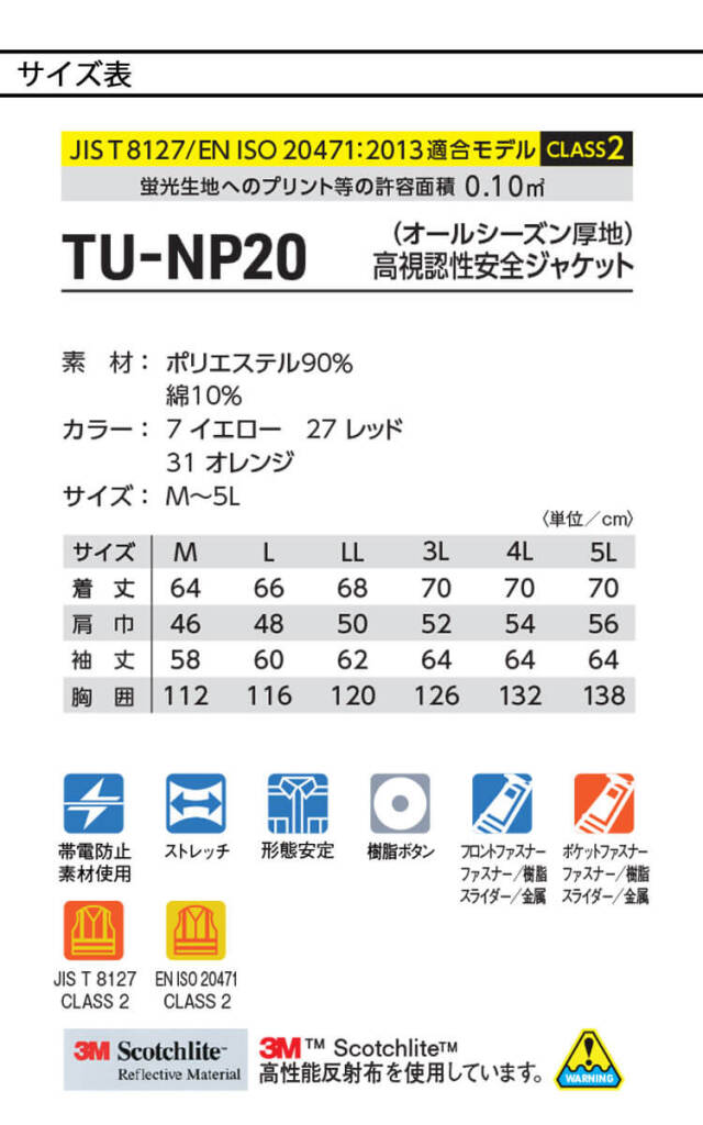 | 製品名: | タカヤ商事 タカヤワークウェア 高視認性安全ジャケット TU-NP20 通年 作業着 Night Knight ナイトナイト |