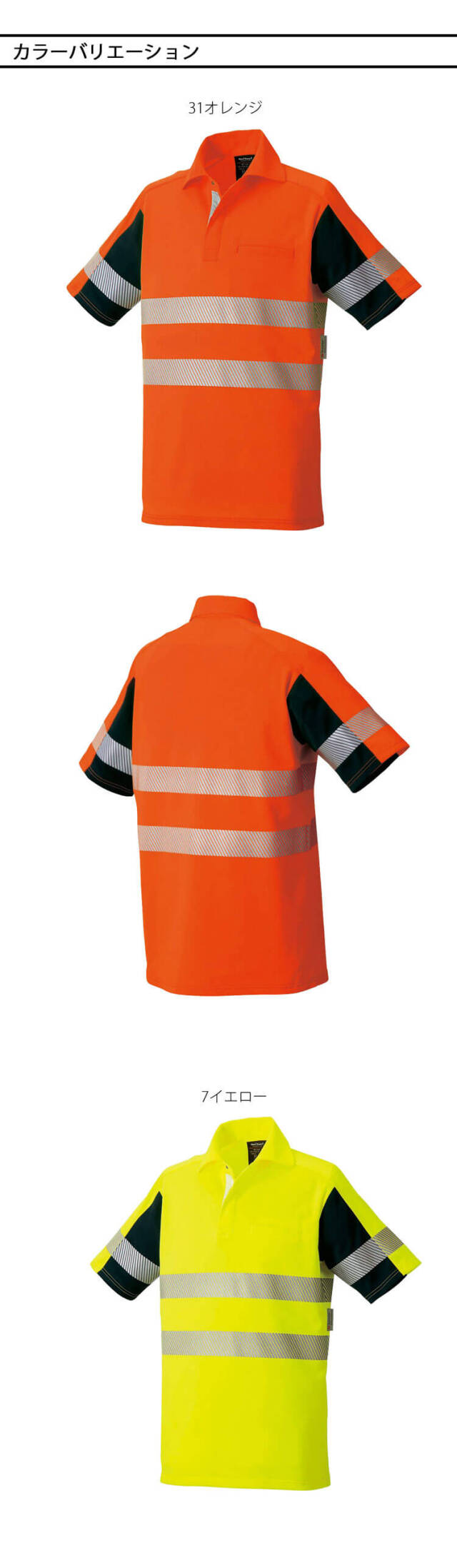 タカヤ商事の高性能高視認性安全半袖ポロシャツです。JIS T 8127高視認性安全服の規格に適合する製品を展開しているNight Knightシリーズです。反射材使用で夜間作業や倉庫内作業等での対車両事故リスクを軽減します。高視認性安全服は、明所及び暗所における車両、建機などの移動体の前照灯の下でどのような光に対しても、運転者又は機械作業者に対し着用者を目立たせることを目的とする衣服です。高い視認性という機能だけではなく耐久性、帯電防止性、軽量性、透湿性、防水性、ストレッチ性等の快適性を考慮した製品を展開しています。