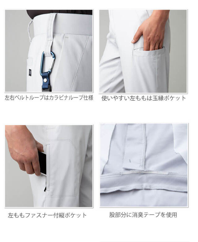 左右ベルトループにはカラビナが設置できる仕様です。右ももにはファスナー付きの縦ポケットを搭載した、スタイリッシュな収納機能をプラスしたデザインパンツです。豊富なカラー展開で多彩なコーディネートが可能。レディースサイズに対応したダイバーシティモデルです。