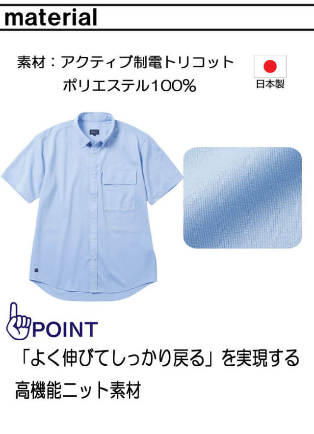 よく伸びてしっかり戻るを実現する高機能ニット素材を使用したストレスフリーニットシャツです。高い通気性と吸汗性も備えたドライタッチの最強モデルです。ワークウェア向けに開発された制電トリコット素材でピリング・スナッグの性能アップ。 レディース対応も充実、ダイバーシティーモデルです。 シワや折り目がつきにくい上、軽量で柔らかくフィット感に優れています。